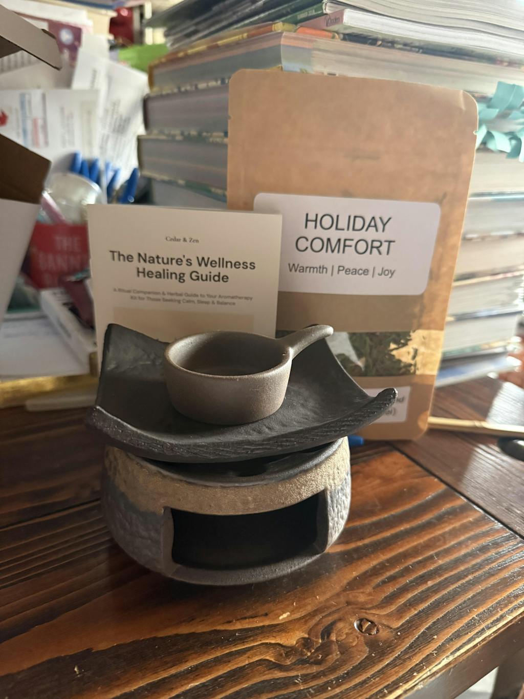 Yes, the kit itself is safe because it uses only a candle and ceramic plate. However, safety depends on the herbs you choose. Some ingredients, such as lavender and rosemary, are generally considered safe in small amounts, while others like mint, eucalyptus, or citrus may irritate pets. Our Healing Guide includes a section on pet-safe herbs. As with any candle, always keep the burner out of reach and use it in a well-ventilated room.